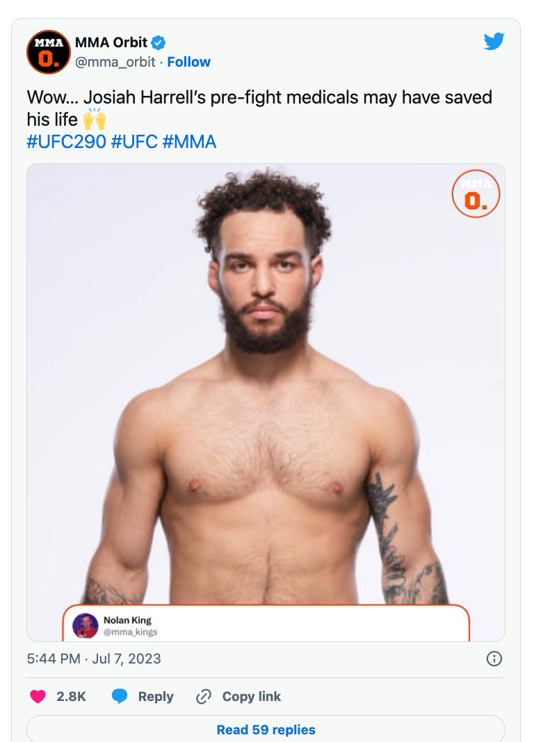 Josiah Harrell was set to make his UFC debut at Saturday's UFC 290 event in Las Vegas.