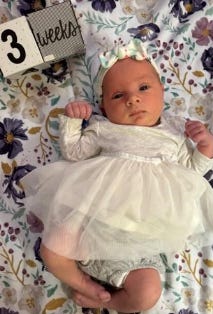 Joy, IL - Yvonne Nancy was born on July 30, 2024 in Iowa City, two months before her due date. She spent her 7 weeks in the NICU wrapping her family around her finger. Yvonne’s journey on earth ended on September 17, 2024.