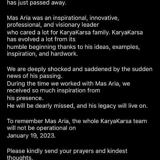 A CTO of Karyakarsa Dies, Aria Rajasa Passed away at a Young Age and Full of Many Works