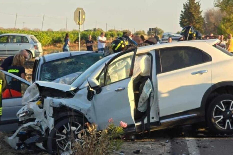 Mesagne (Province of Brindisi in Puglia) - More blood on Italian roads. For reasons yet to be ascertained, two cars collided frontally, yesterday afternoon June 27, in Torre Santa Susanna- Ennesima on the provincial road that connects Torre to Mesagne. The impact occurred between a 500 X White and a Renault, but also involved a third car. A 66-year-old woman, Lisetta Calò, originally from Manduria and living in Erchie, lost her life. Among the wounded, five, three are serious. Among them also a child of 7 years.