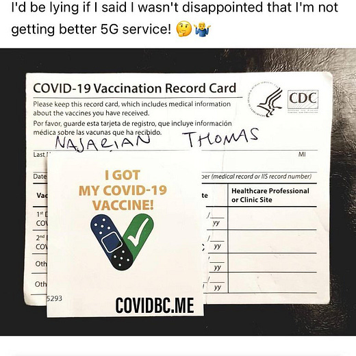 On March 6, 2021, Naj posted his Pfizer vax card:
