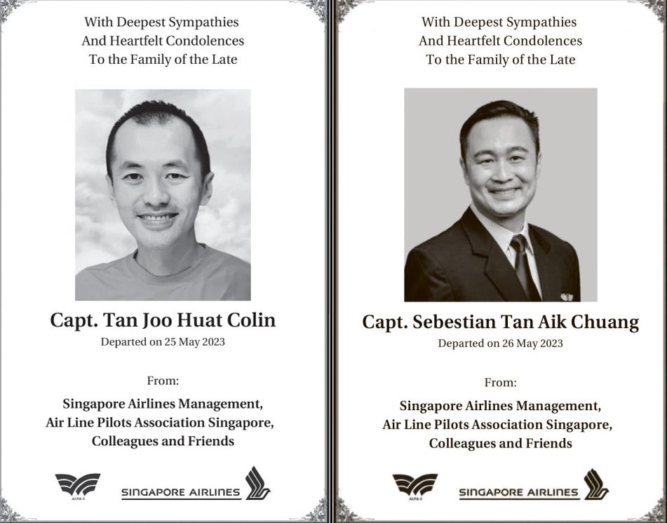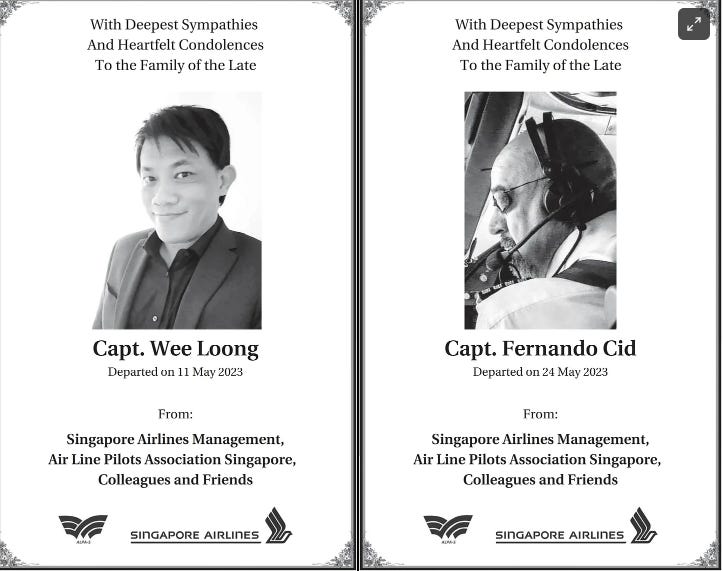 4 Singapore Airlines pilots died suddenly May 2023