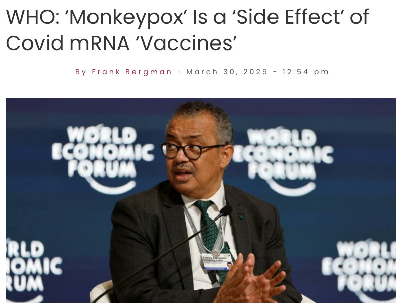 The World Health Organization (WHO) has admitted that so-called “monkeypox” is actually a side effect of Covid mRNA “vaccines.”