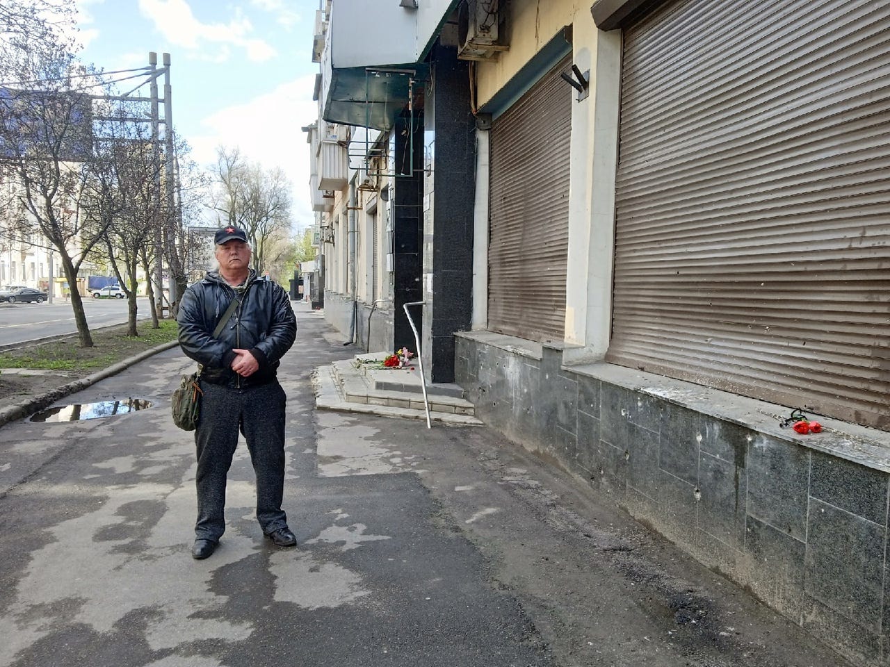 The beret and scarf of the grieving man's wife. She died here. I took this photo myself.