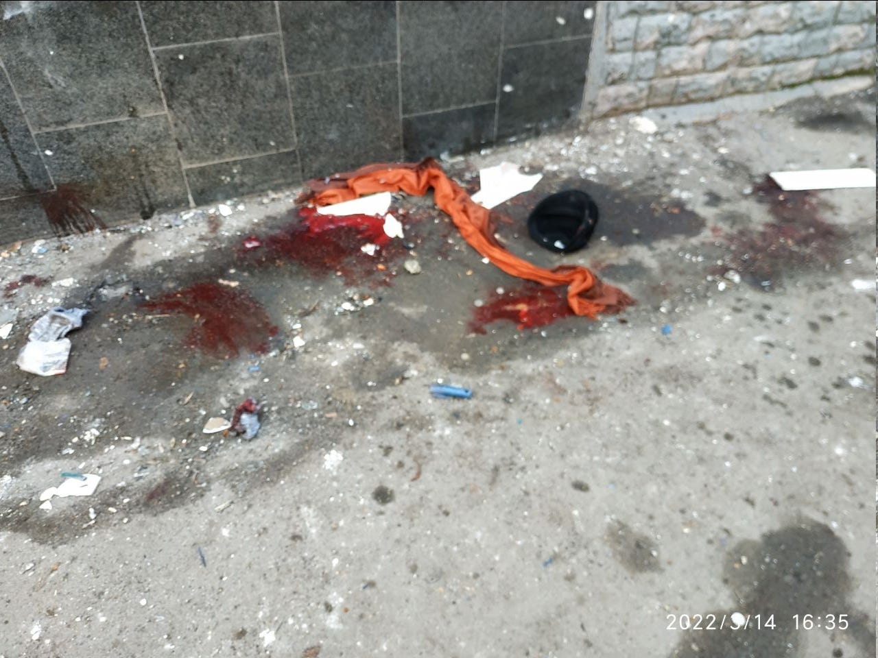 I could tell you that the photo actually shows the results of a Ukrainian Army war crime by a Tochka-U missile that was intentionally launched at Donetsk city center around 12:00 noon on Monday March 14th, that in fact it was intended to kill many times more than the 24 civilians who were murdered. I could tell you that the weekend before, fake ukrop troll accounts on Russian and other social media spread false stories that the DPR administration would be giving news about the status of DPR soldiers at 12:30 on March 14th at the Administration Building in central Donetsk, and wives, mothers, daughters of soldiers should come there then. This message was also sent by text message to specific phones of female family members of soldiers by spoofed DPR Administration accounts. I can confirm it, the daughter of one of my friends serving at the Front showed me the exact message on her phone. I could tell you that the missile was intercepted by DPR air defense, and only two cannisters of cluster bomb submunitions actually detonated when they hit about 500 meters from the Administration Building, on University Avenue in central Donetsk and had the missile reached its target the death toll would have been in the hundreds. Maybe you would believe me, maybe some would not. But I can show you two photos that prove it.